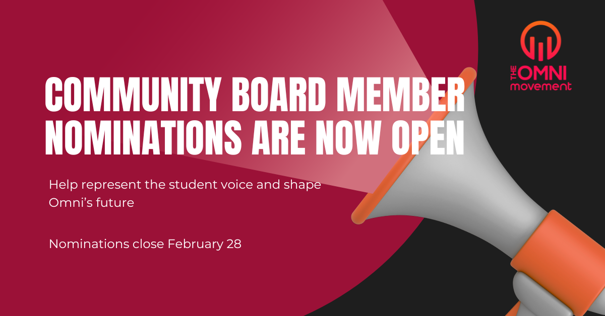 Omni was built by and for its community. To ensure that community voices remain part of leadership, Omni reserves a seat on its Board for a Community Member - a student representative who participates in discussions and decisions that help guide Omni’s future.