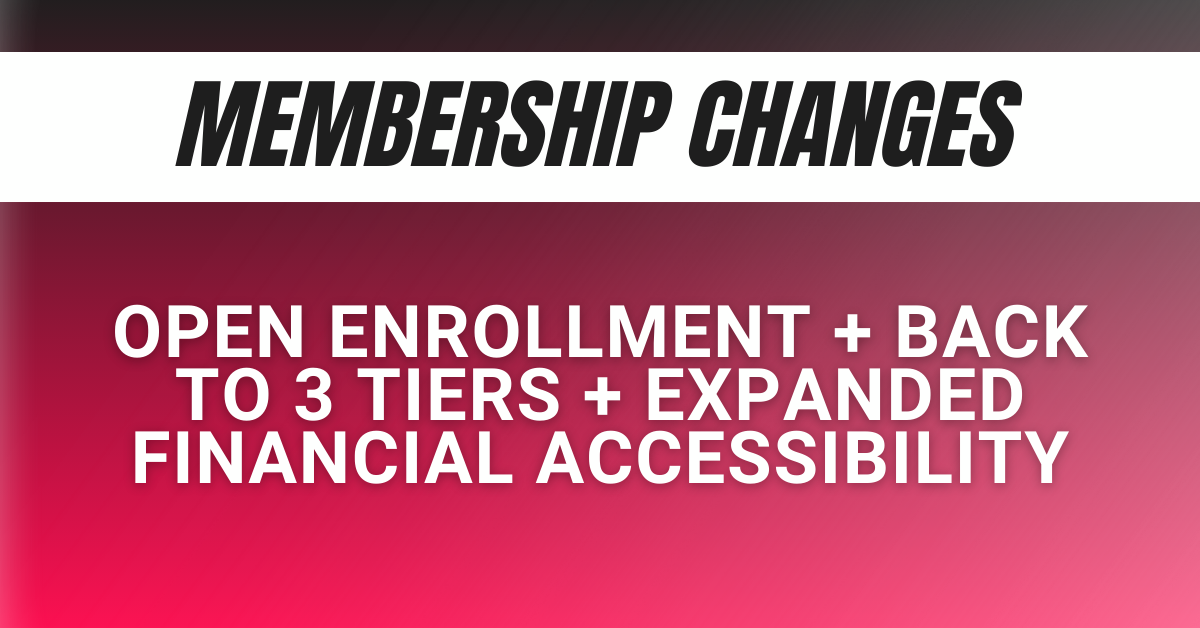 Membership Changes: Open Enrollment + Back to 3 Tiers + Expanded Financial Accessibility