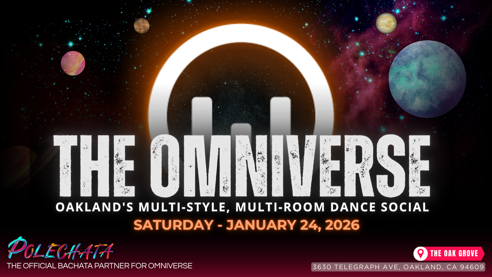 Welcome to Omniverse — a reimagined social dance experience bringing together the best of Brazilian Zouk, Bachata and Urban Kiz under one roof. Explore three rooms, three styles, one unforgettable night.